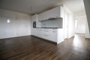 - Die gesamte Wohnung ist mit einem braunen Laminat ausgestattet